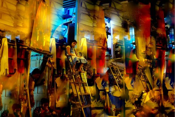 Her Pin Code series unfurls the nuances of the “city of dreams,” and extends beyond the cacophony and clangour of Mumbai. In the mixed media painting, lightbox, textile and poetry series Freedom, I Read Banned Books (2019-2021) she advocates breaking free from patriarchal structures. Using light as a guiding principle, Gandhi’s work speaks to the transformative power of artistic practice merging photography, painting, resin, gold leafing, resin and collage.